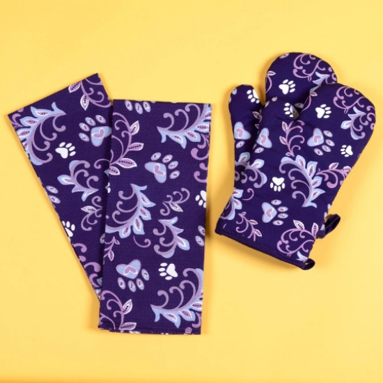 Paws in Plum Kitchen Textiles